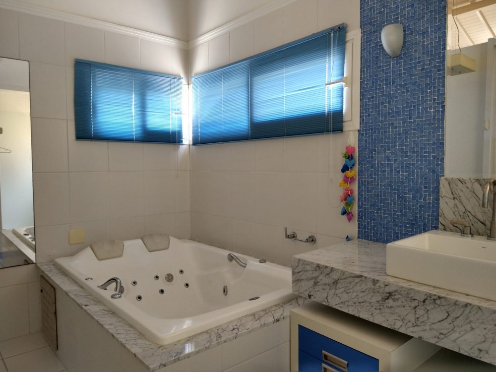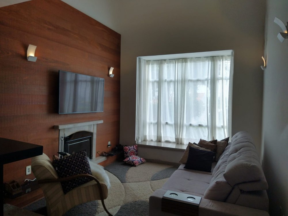 Excelente Sobrado no Condomínio Aruã com 4 dormitórios sendo 1 suíte com banheira, 3 salas, copa, cozinha, 5 banheiros, aquecimento a gás em toda casa, área de serviço, escritório, despensa, lareira, bar, piscina e 2 vagas de garagem cobertas. Permite financiamento bancário. Condomínio oferece lazer completo.