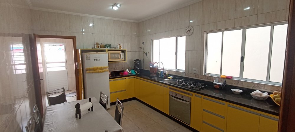 Sobrado com 3 dormitórios sendo 1 suíte (com sacada, closet e planejados), sala em 2 ambientes, cozinha com planejados, 2 banheiros, lavabo, área de serviço coberta, 4 vagas de garagem sendo 2 cobertas, quintal nos fundos com área gourmet.