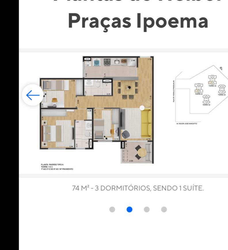 - Área Privativa: 74 m²