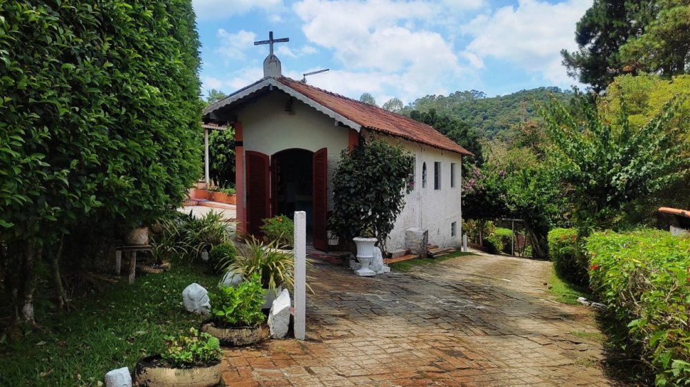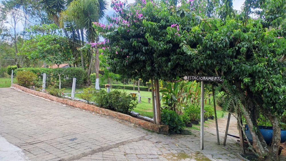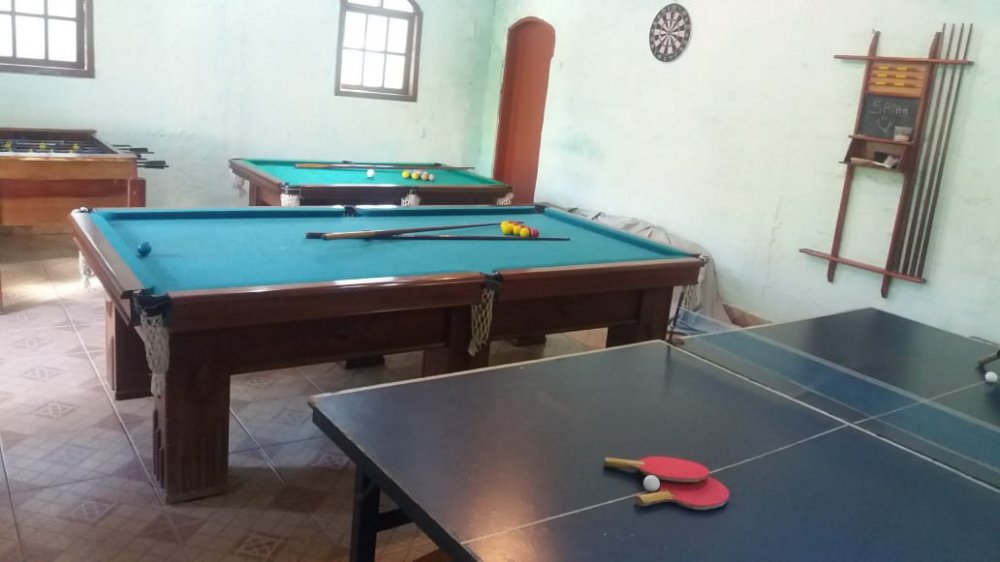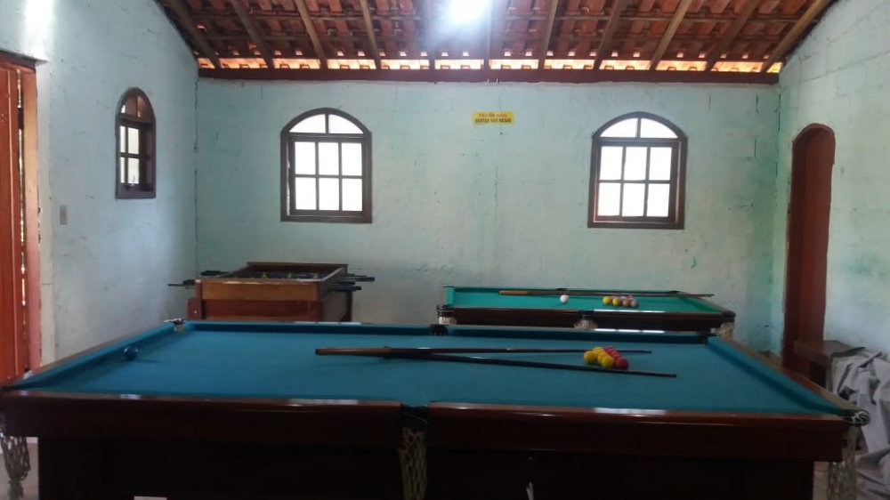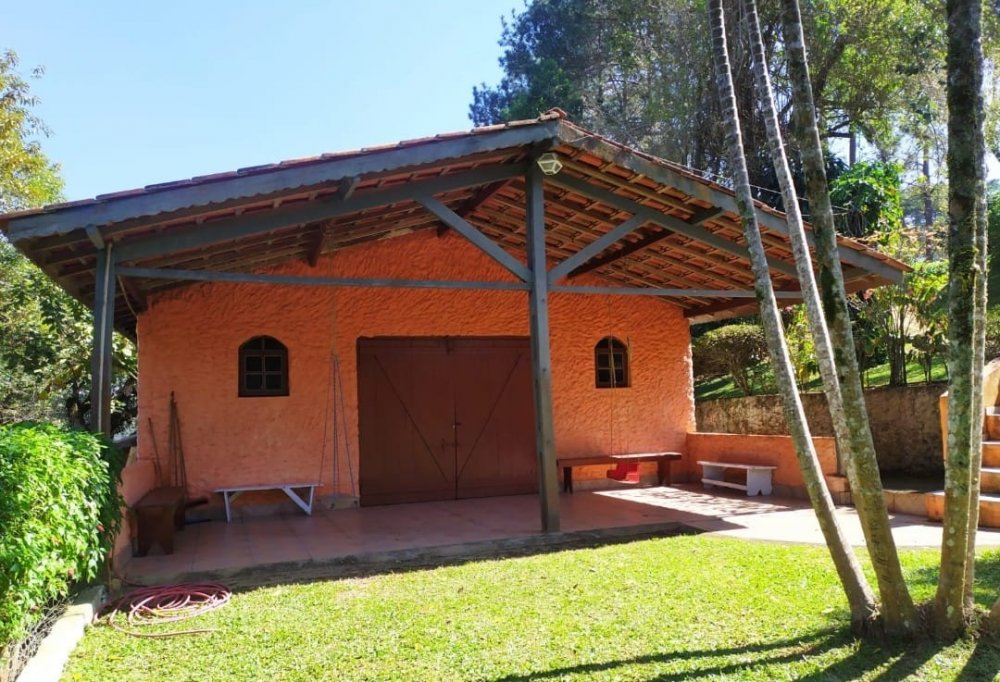 Chácara com 2 entradas frontais (porteira fechada) e totalmente mobiliada (com camas, colchões, fogão industrial, geladeira, freezer, área da churrasqueira e salão de jogos equipados - Casa avarandada contendo: 8 dormitórios, uns com vista para o estacionamento e outros para a varanda, sendo 1 com suíte e mais 3 banheiros, totalizando 14 beliches e 5 camas de casal - Sala ampla com bancos de alvenaria - Estacionamento para aproximadamente 13 carros - Capela - Piscina 4x9m de fibra e cercada com balaústres - Campo de futebol já com tela aramada em volta - Horta e pomar - Amplo espaço jardinado - Salão de jogos com banheiro e equipado com: 1 mesa de ping-pong; 2 mesas de sinuca e 1 pebolim - Lavanderia - Área gourmet com churrasqueira, forno e fogão à lenha com pia e bancada de granito, fechada com porta/janela de zinco e mobiliado com 2 mesas e bancos de madeira maciça, contendo 2 banheiros com chuveiro - Cozinha azulejada, contendo mesa e bancos de madeira maciça, 1 fogão industrial, 1 freezer horizontal, geladeira e armários. Pia e bancada de granito - Casa para caseiro reformada: cozinha, sala, 1 quarto, banheiro e lavanderia com opção de ser utilizada como 2ª casa se preferir - Playground - Telhado romano - Portas e janelas de alumínio - Porão para guardar equipamentos - 4 cxs d´água de 5 mil litros sendo: 2 para captação de água da chuva e 2 para água encanada + 2 cxs d´água de 1 mil litros sendo: 1 na casa do caseiro e 1 no salão de jogos - Escriturada e documentação ok - ESTUDA PROPOSTA E NÃO ACEITA PERMUTA.