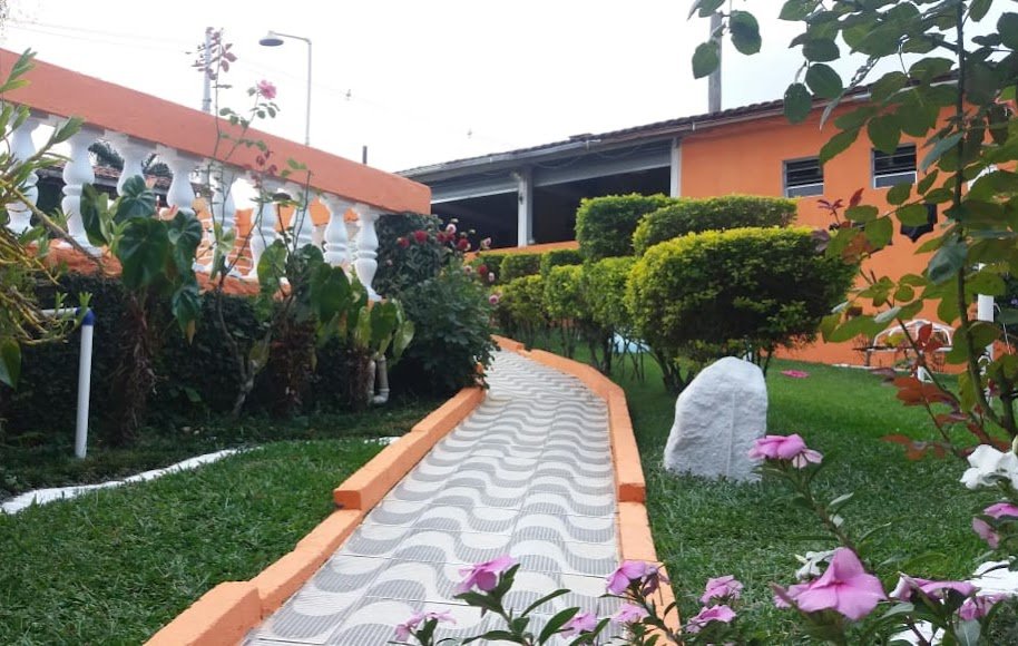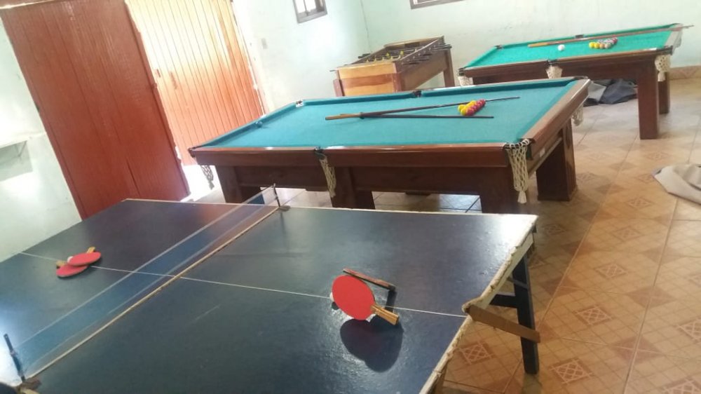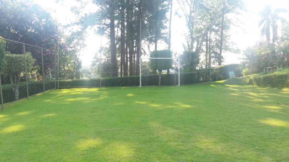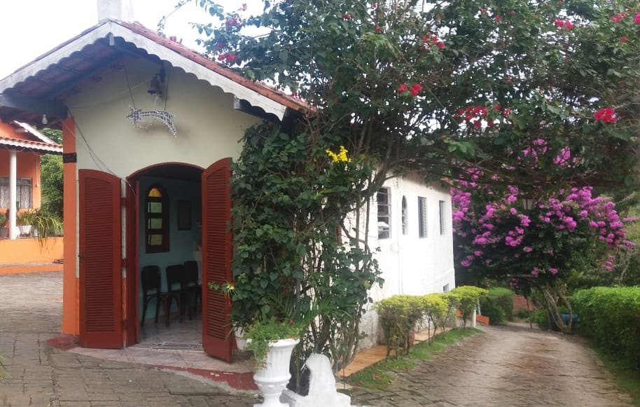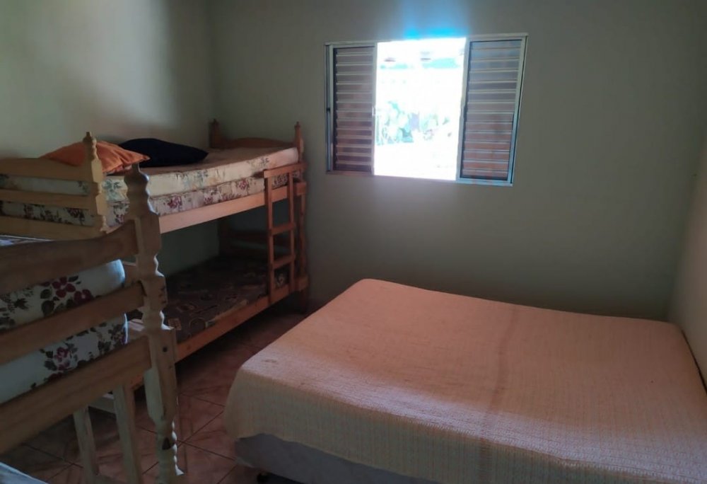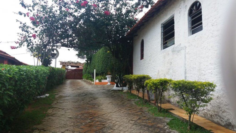 Chácara com 2 entradas frontais (porteira fechada) e totalmente mobiliada (com camas, colchões, fogão industrial, geladeira, freezer, área da churrasqueira e salão de jogos equipados - Casa avarandada contendo: 8 dormitórios, uns com vista para o estacionamento e outros para a varanda, sendo 1 com suíte e mais 3 banheiros, totalizando 14 beliches e 5 camas de casal - Sala ampla com bancos de alvenaria - Estacionamento para aproximadamente 13 carros - Capela - Piscina 4x9m de fibra e cercada com balaústres - Campo de futebol já com tela aramada em volta - Horta e pomar - Amplo espaço jardinado - Salão de jogos com banheiro e equipado com: 1 mesa de ping-pong; 2 mesas de sinuca e 1 pebolim - Lavanderia - Área gourmet com churrasqueira, forno e fogão à lenha com pia e bancada de granito, fechada com porta/janela de zinco e mobiliado com 2 mesas e bancos de madeira maciça, contendo 2 banheiros com chuveiro - Cozinha azulejada, contendo mesa e bancos de madeira maciça, 1 fogão industrial, 1 freezer horizontal, geladeira e armários. Pia e bancada de granito - Casa para caseiro reformada: cozinha, sala, 1 quarto, banheiro e lavanderia com opção de ser utilizada como 2ª casa se preferir - Playground - Telhado romano - Portas e janelas de alumínio - Porão para guardar equipamentos - 4 cxs d´água de 5 mil litros sendo: 2 para captação de água da chuva e 2 para água encanada + 2 cxs d´água de 1 mil litros sendo: 1 na casa do caseiro e 1 no salão de jogos - Escriturada e documentação ok - ESTUDA PROPOSTA E NÃO ACEITA PERMUTA.