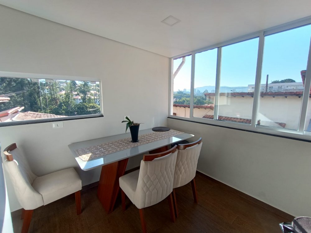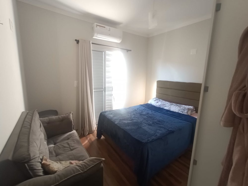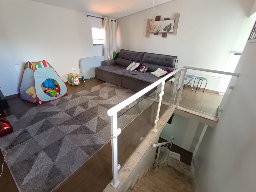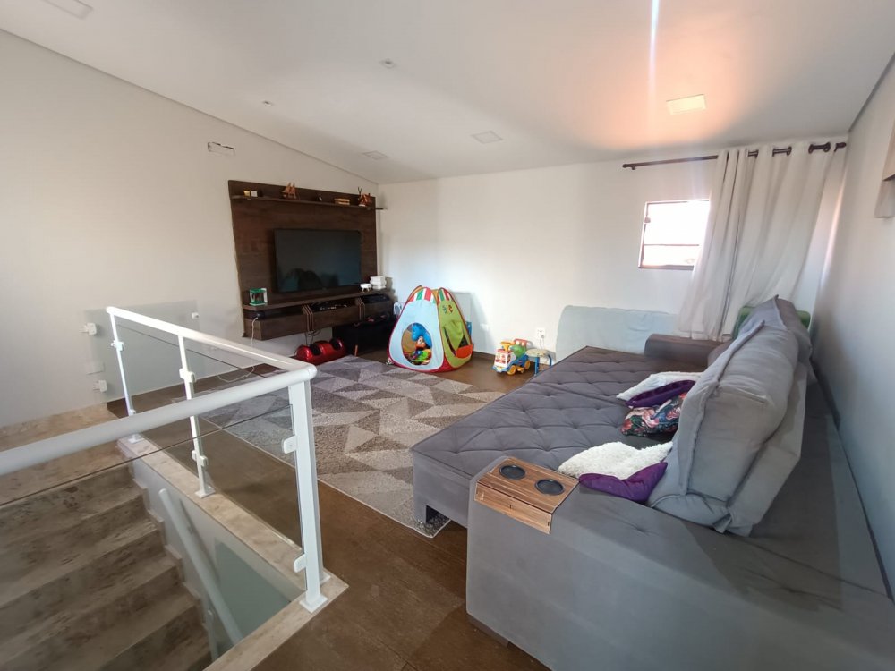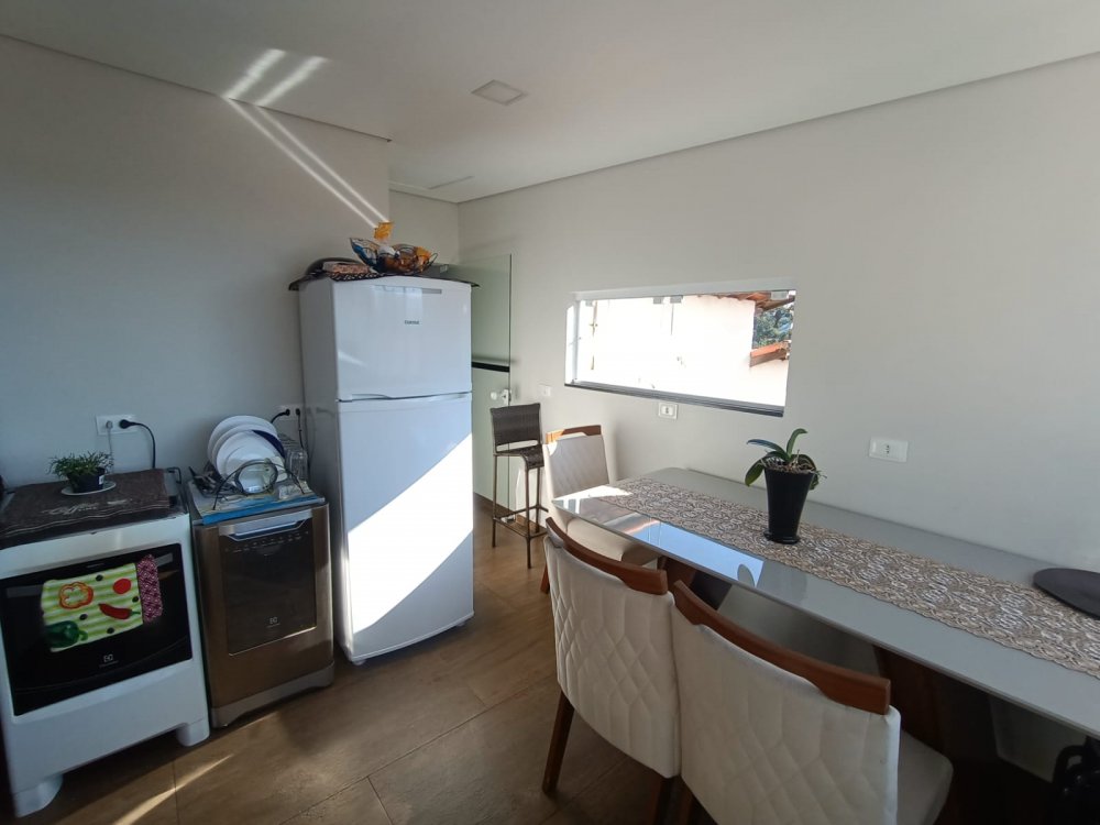 Pavimento térreo: 2 dormitórios sendo 1 suíte com ar condicionado, sala de estar, cozinha com planejados, área de servico, pequeno quintal e 2 vagas de garagem cobertas. Pavimento superios: sala de tv com ar condocionado, banheiro e espaço gourmet com churrasqueira, pia e vista panorâmica.