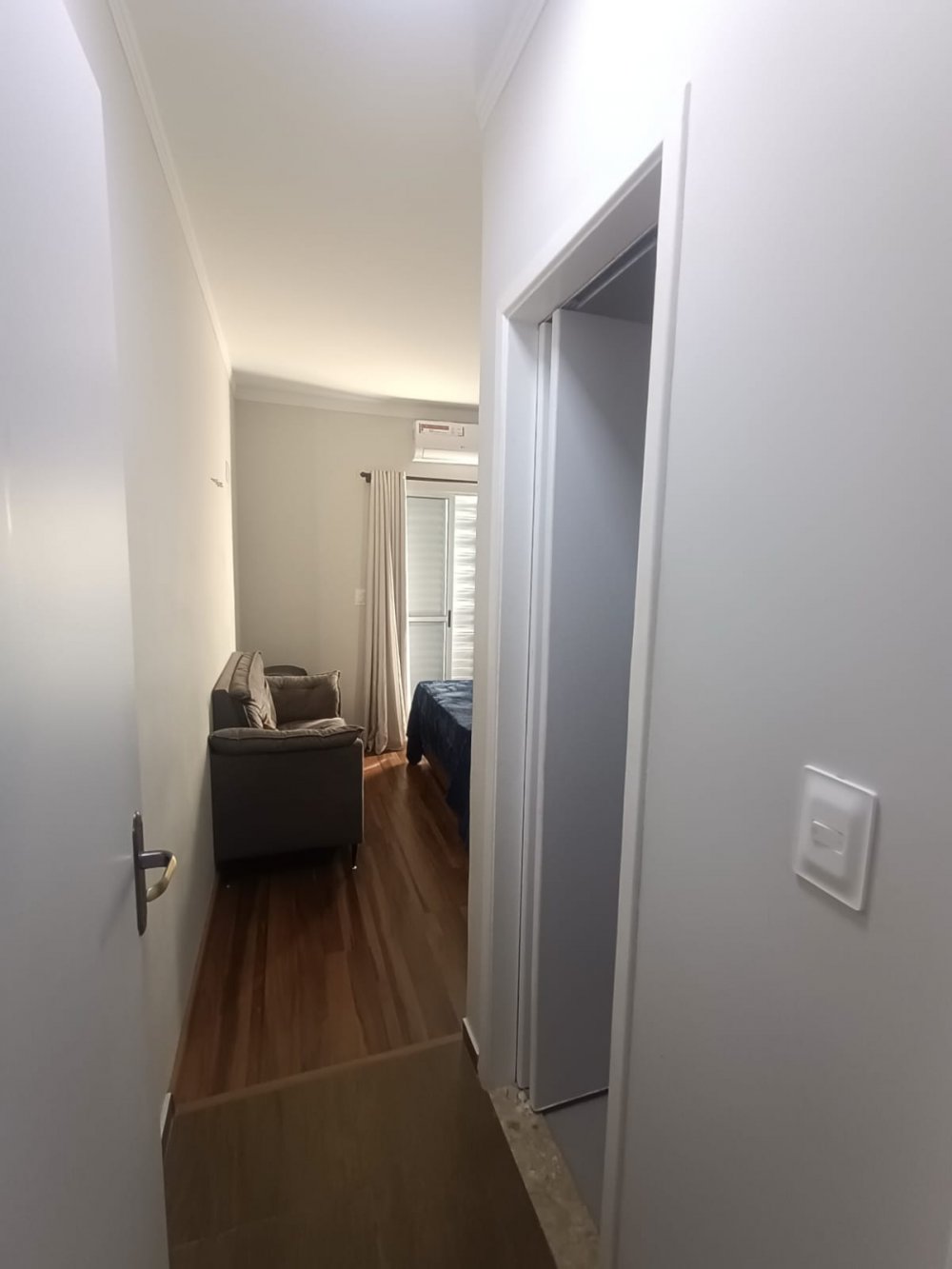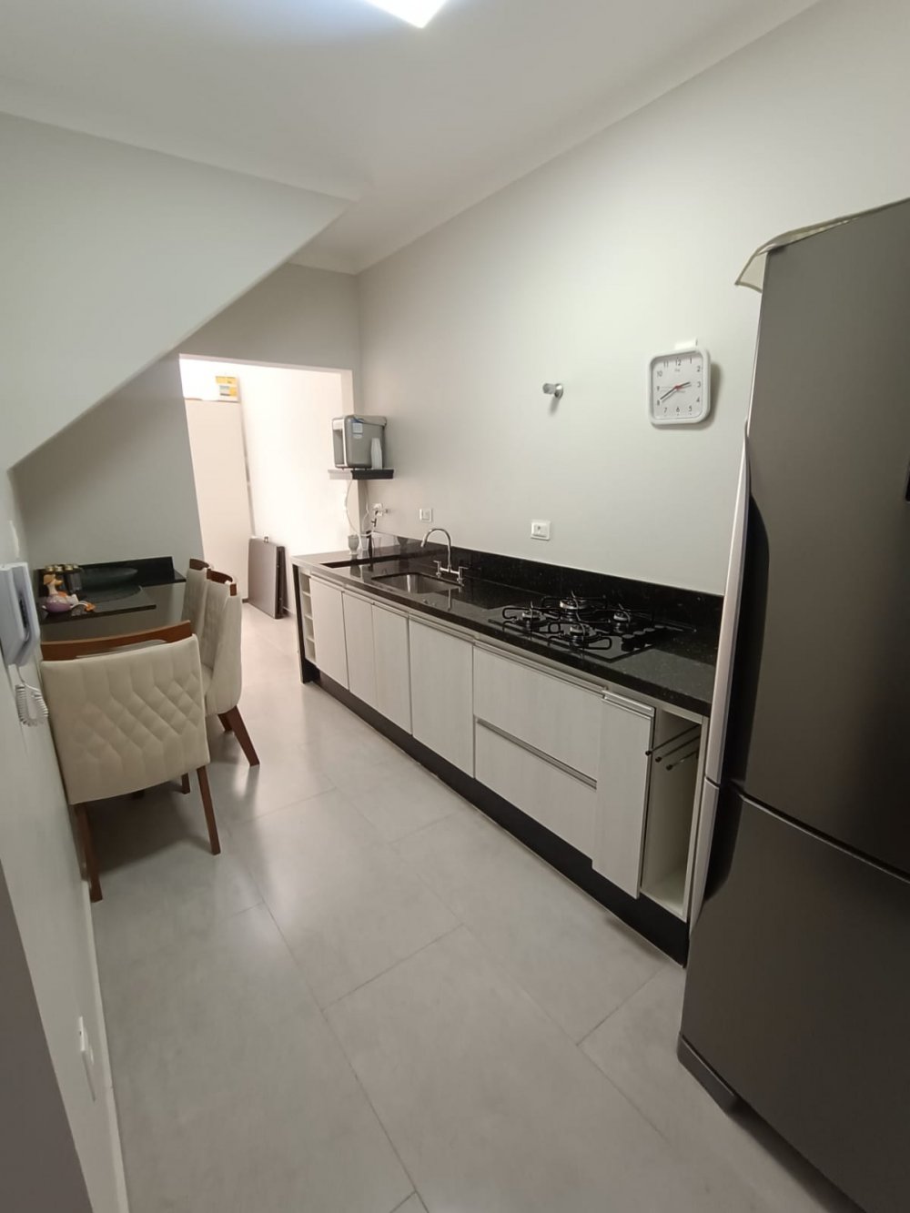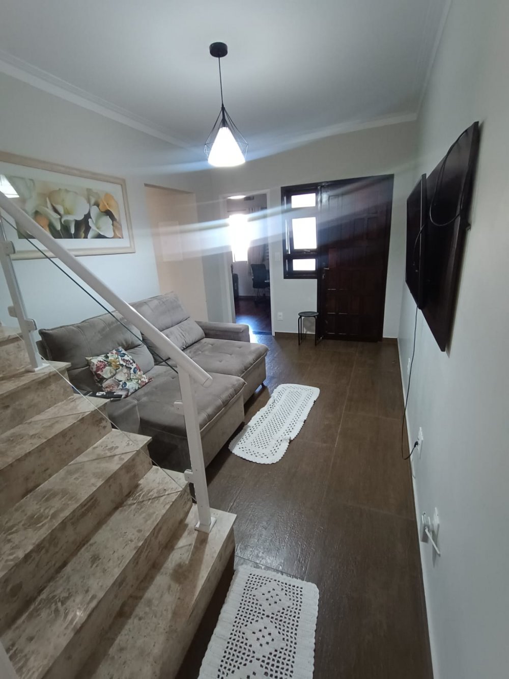 Pavimento térreo: 2 dormitórios sendo 1 suíte com ar condicionado, sala de estar, cozinha com planejados, área de servico, pequeno quintal e 2 vagas de garagem cobertas. Pavimento superios: sala de tv com ar condocionado, banheiro e espaço gourmet com churrasqueira, pia e vista panorâmica.