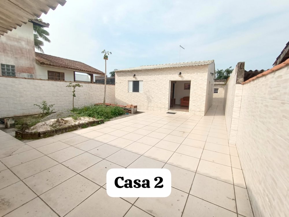 São 2 casas (totalmente separadas) no mesmo terreno para venda. Casa 1: sala, cozinha em conceito aberto, banheiro, 2 dormitórios, área de serviço, poço semi-artesiano, quintal, churrasqueira e 2 vagas de garagem. Casa 2: sala, cozinha, banheiro, 2 dormitórios (com ar condicionado) sendo 1 suíte, área de serviço, espaço gourmet, quarto de ferramentas, quintal, jardim e vagas para 8 carros. Rua recém asfaltada, próxima ao Sesc. Imóvel à 100 metros da areia da praia!